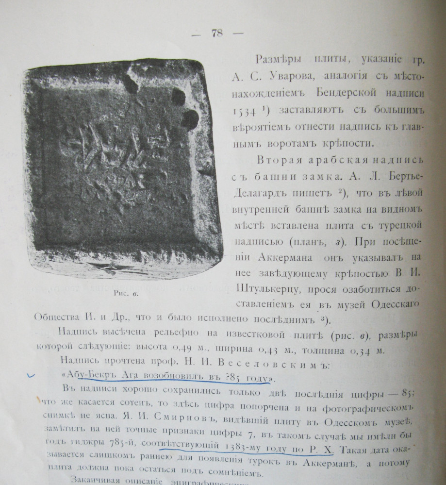 «В конце XIX века ее сняли со стены одесские ученые и передали на хранение в фонды Музея древностей. Были произведены обмеры и фотографии, по которым ее удалось восстановить сейчас. Надпись на староосманском на ней гласит: «Отремонтировал Абу-Бекр ага. Год 1673», — рассказал он.