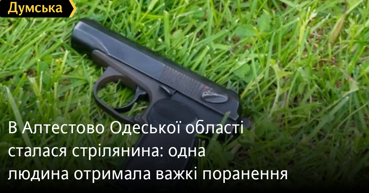 В Алтестово Одеської області сталася стрілянина: одна людина отримала важкі пораненняОдна людина отримала важкі поранення внаслідок стрілянини в селі Алтестово ввечері 17 листопада. Постраждалого забрали в лікарню з важкими пораненнями, повідомили «Думській» джерела в правоохоронних органах. Наразі на місці події працюють правоохоронці. Обставини інциденту поки не розголошують. СМЕРТЬ РОСІЙСЬКИМ ОКУПАНТАМ! Помітили помилку? Виділяйте слова з помилкою та натискайте control-enter |
