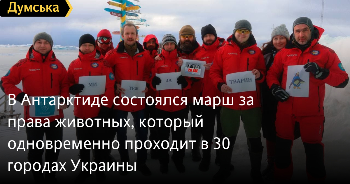 В Антарктиде состоялся марш за права животных, который одновременно проходит в 30 городах УкраиныВсеукраинский марш за права животных, который по инициативе гуманистического движения UAnimals одновременно стартовал в 30 украинских городах, прошел и в Антарктиде. Как сообщает телеграм-канал UAnimals, первыми вышли на акцию участники экспедиции на украинской антарктической станции «Академик Вернадский». «Мы можем наблюдать и изучать животных в естественной заповедной среде, которая стала такой благодаря последовательным усилиям международной научной и природоохранной общественности, — сообщают на станции. — Однако еще не так давно отношение к животным в этом регионе нашей планеты было совсем другим». По словам исследователей, еще в XX веке к животным здесь относились как к ресурсу. В частности, популяции китов беспощадно эксплуатировали в ходе китобойного промысла, а установленный на него запрет до сих пор не привел к восстановлению численности всех видов. «Мы искренне убеждены, что морские млекопитающие должны жить исключительно в морях и океанах, а не в дельфинариях. Вместе с вами мы разделяем намерение приложить максимум усилий для защиты окружающей среды, ведь сохранение планеты начинается с бытового уровня, и призываем каждого к гуманному обращению с животными», — заявляют ученые. Отметим, участники Всеукраинского марша за животных выступают за полный запрет цирков с животными, дельфинариев, контактных зоопарков, притравочных станций и меховых ферм. Активисты требуют справедливого наказания за жестокое обращение с животными, искоренения в Украине практики попрошайничества и уличных фотографий с животными. СМЕРТЬ РОССИЙСКИМ ОККУПАНТАМ! Заметили ошибку? Выделяйте слова с ошибкой и нажимайте control-enter |