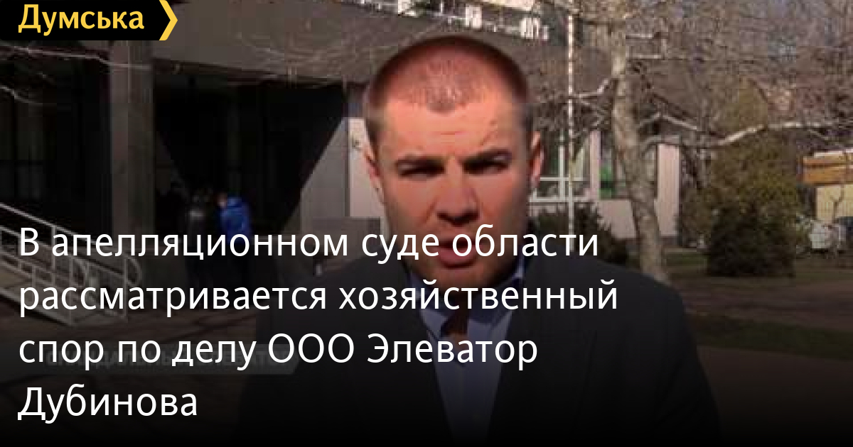 В апелляционном суде области рассматривается хозяйственный спор по делу ООО «Элеватор Дубинова»Яблоком раздора стал «Элеватор Дубиново» в Савранском районе. Яков Осташ, который по собственному желанию вышел из состава учредителей, изменил решение. Сегодня он заявляет, что на его предприятии происходит рейдерский захват. Экс-владельца элеватора, который и пригласил в свое время Осташа на работу, такие заявления, по меньшей мере, удивляют СМЕРТЬ РОССИЙСКИМ ОККУПАНТАМ! Заметили ошибку? Выделяйте слова с ошибкой и нажимайте control-enter Думская ТВ. Сюжеты: