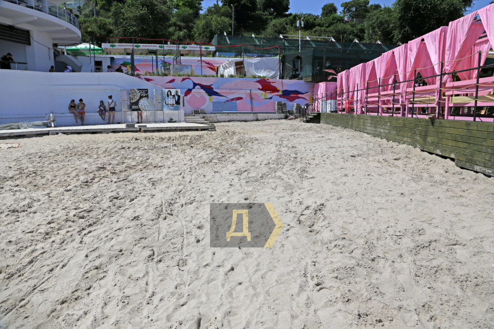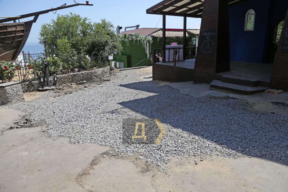 Кое-где сошел асфальт, но его заменили щебнем, образовавшиеся провалы огородили щитами, а грязный песок заменили на свежий.