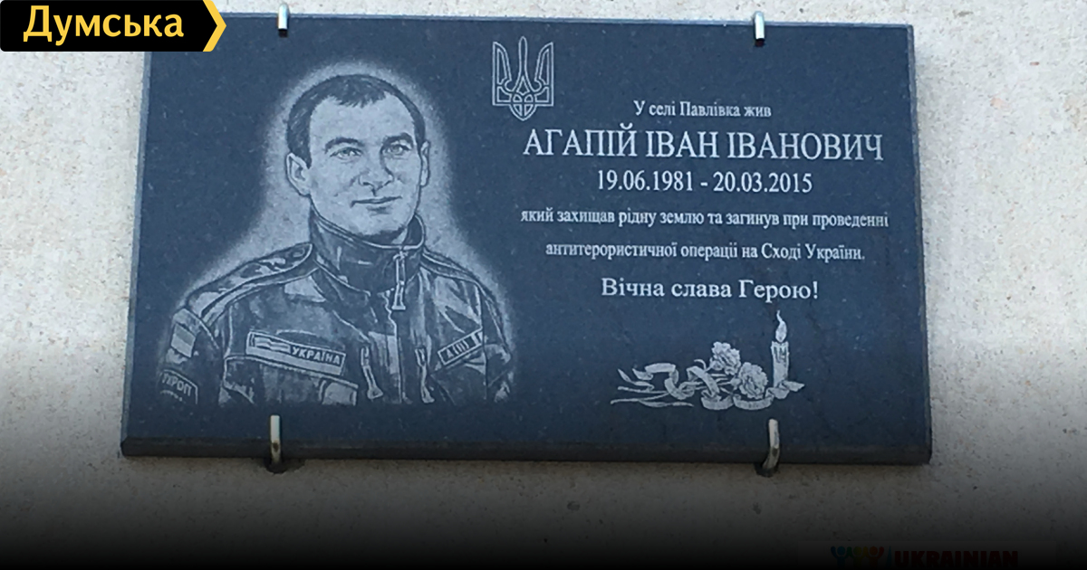 В Арцизском районе открыли мемориальную доску в честь военнослужащего, погибшего в АТОСегодня, 18 марта, в селе Павловка Арцизского района по инициативе главы РГА Сергея Парпуланского открыли мемориальную доску в память о Агапие Иване Ивановиче, погибшем в зоне АТО. Памятная табличка была установлена на фасаде местной школы, в которой учится дочь погибшего, первоклассница Валерия. В рамках торжественного открытия прошел митинг-реквием. Кроме представителей райгосадминистрации, районного и сельского советов, на митинге присутствовали участники АТО, волонтеры, жители села, учителя и ученики школы, родные погибшего. Иван Агапий два года назад добровольцем ушел на фронт защищать целостность и независимость страны. 20 марта 2015 года его жизнь трагически оборвалась при выполнении боевого задания под Мариуполем. Ему было всего 33 года. В завершение митинга присутствующие возложили цветы к мемориальной доске. СМЕРТЬ РОСІЙСЬКИМ ОКУПАНТАМ! Помітили помилку? Виділяйте слова з помилкою та натискайте control-enter |
