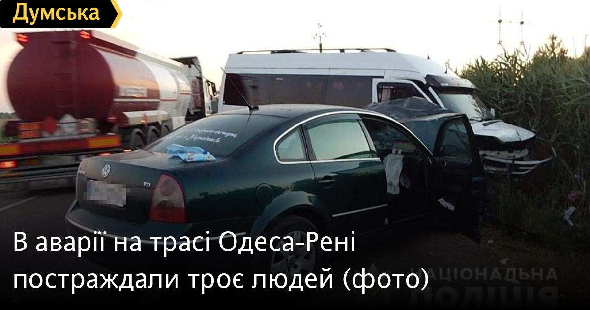 Троє людей постраждали внаслідок аварії біля села Маяки. Мікроавтобус Mercedes виїхав на зустрічну смугу, а водій легкового Volkswagen, хоч і намагався запобігти зіткненню, виїхавши на узбіччя, уникнути його не зміг, повідомляють у пресслужбі поліції Одеської області. Внаслідок дорожньо-транспортної пригоди водій легковика — 46-річний житель Арциза, та двоє його пасажирів 38-ми та 43-х років були госпіталізовані. У них забиття, черепно-мозкові травми, переломи кінцівок. Тест на вміст алкоголю в організмі показав, що обидва водії були тверезими. Поліцейські розпочали досудове розслідування за ч. 1 ст. 286 (порушення правил безпеки дорожнього руху чи експлуатації транспорту особами, які керують транспортними засобами) Кримінального кодексу України. СМЕРТЬ РОСІЙСЬКИМ ОКУПАНТАМ! Помітили помилку? Виділяйте слова з помилкою та натискайте control-enter |