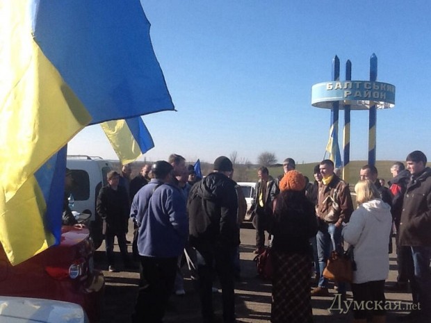 На дороге создан блок-пост. Останавливаются все подозрительные машины. Среди участников перекрытия замечены депутаты районного и городского советов Балты.