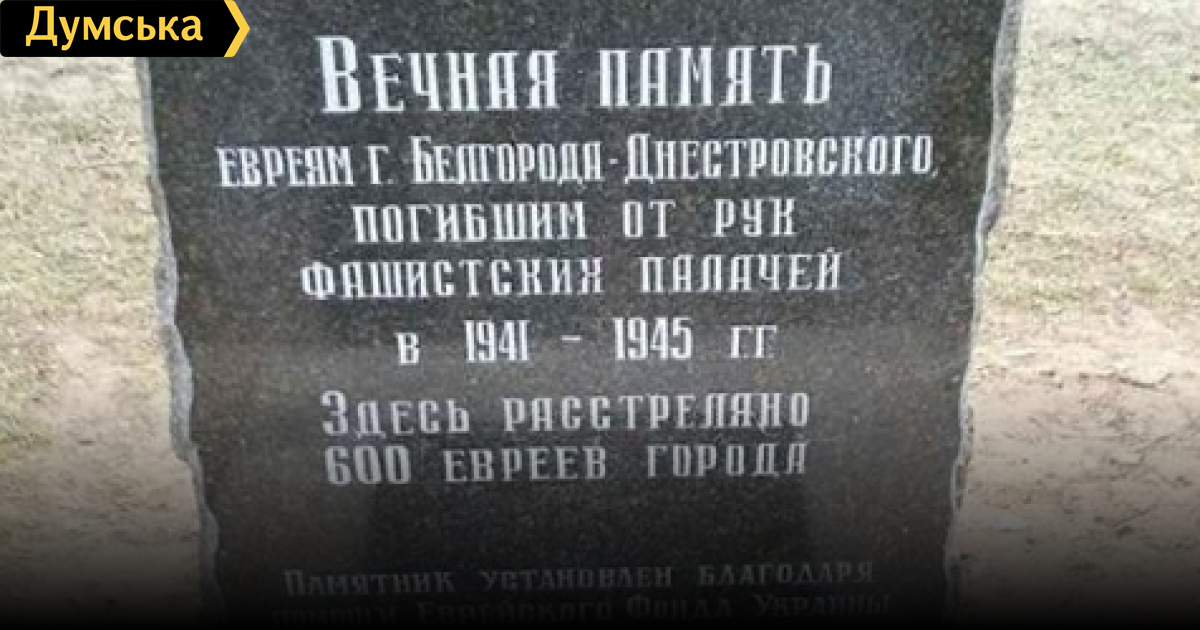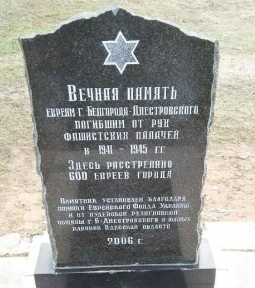 В Белгороде-Днестровском восстановили уничтоженный вандалами мемориальный знак жертвам ХолокостаНакануне Международного дня памяти жертв Холокоста, который отмечается 27 января, в Белгороде-Днестровском Одесской области восстановили памятный знак, разрушенный вандалами неделю назад. Как сообщили в Белгород-Днестровском горсовете, 26 января коммунальщики вернули на прежнее место отреставрированную плиту, установленную на месте расстрела 600 евреев. Поисками хулиганов, разрушивших памятный знак, занимается полиция. СМЕРТЬ РОСІЙСЬКИМ ОКУПАНТАМ! Помітили помилку? Виділяйте слова з помилкою та натискайте control-enter |