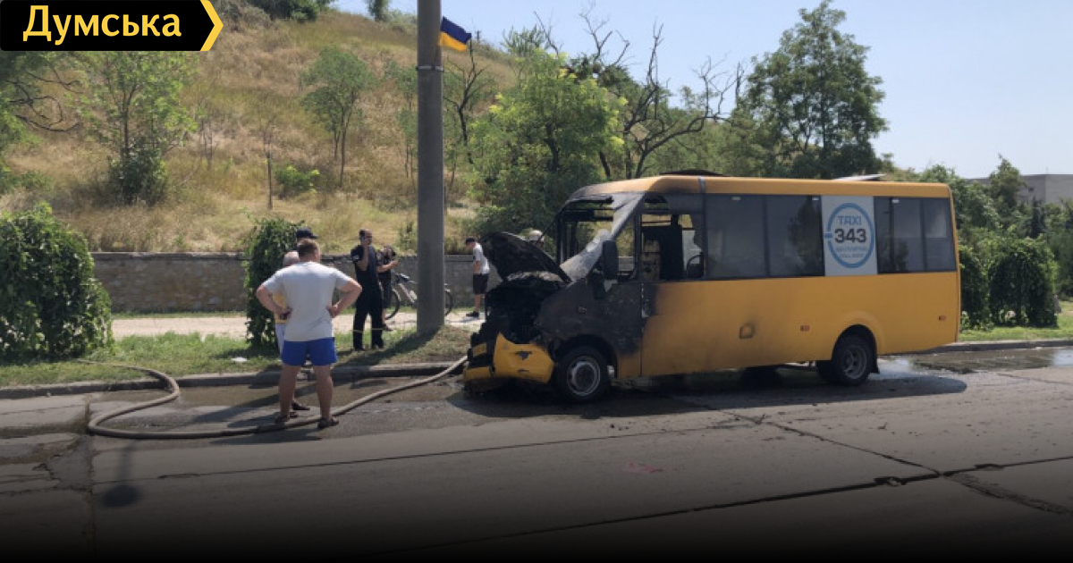 Маршрутное такси с пассажирами загорелось сегодня днем прямо время движения по Западному проспекту в городе Бердянск Запорожской область.