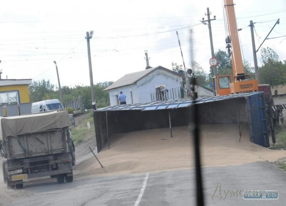 Зерно из оторвавшегося от фуры 36-тонного прицепа завалило железнодорожный переезд в Березовке Одесской области. Как сообщает «Трасса Е-95», инцидент произошел 5 сентября. Выехав на горку перед переездом, водитель решил переключить скорость, но автомобиль потерял мощность и груженный прицеп потянул фуру назад. На изгибе дороги прицеп соскочил с поворотной оси, скатился с горки и опрокинулся. По накладным в прицепе находилось 36 тонн зерна. В результате аварии никто не пострадал. Спустя некоторое время рабочие с помощью тяжелой техники ликвидировали последствие ДТП. Рассыпавшееся зерно перегрузили в другую машину и увезли на Рауховский элеватор. СМЕРТЬ РОСІЙСЬКИМ ОКУПАНТАМ! Помітили помилку? Виділяйте слова з помилкою та натискайте control-enter |