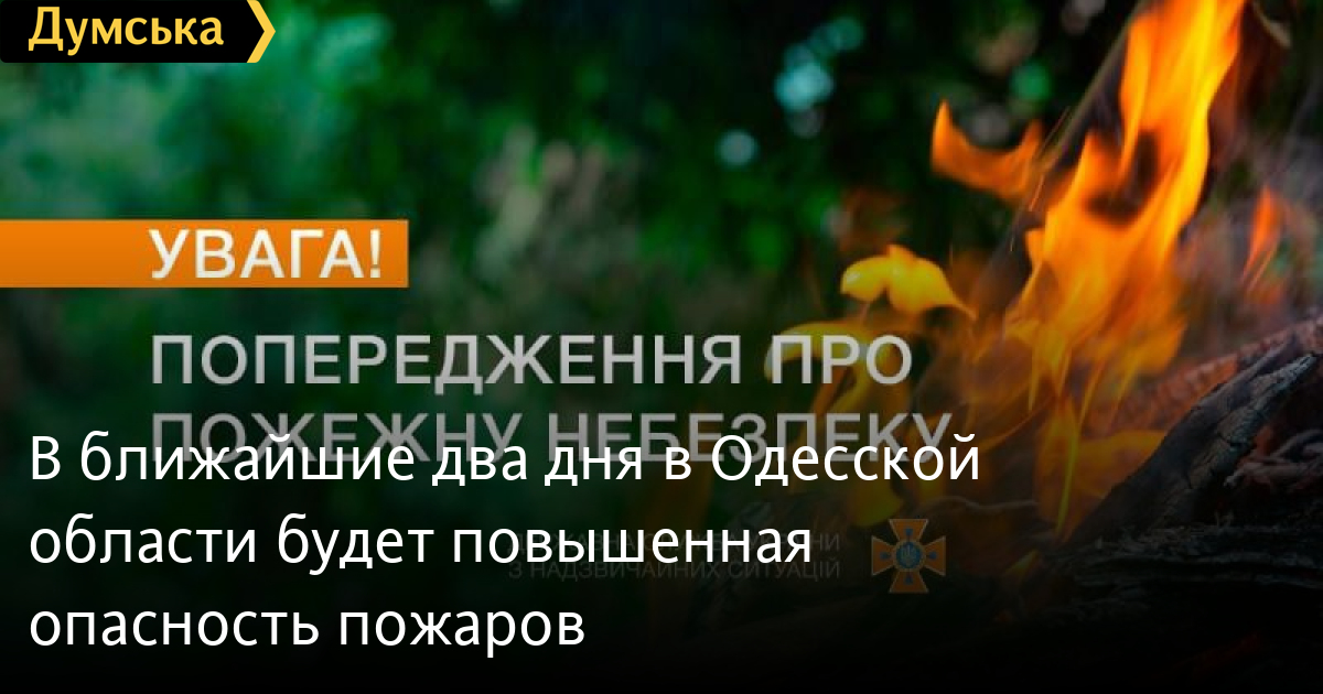 Из-за жаркой и засушливой погоды 28 и 29 мая в Одесской области будет повышенный уровень пожарной опасности.