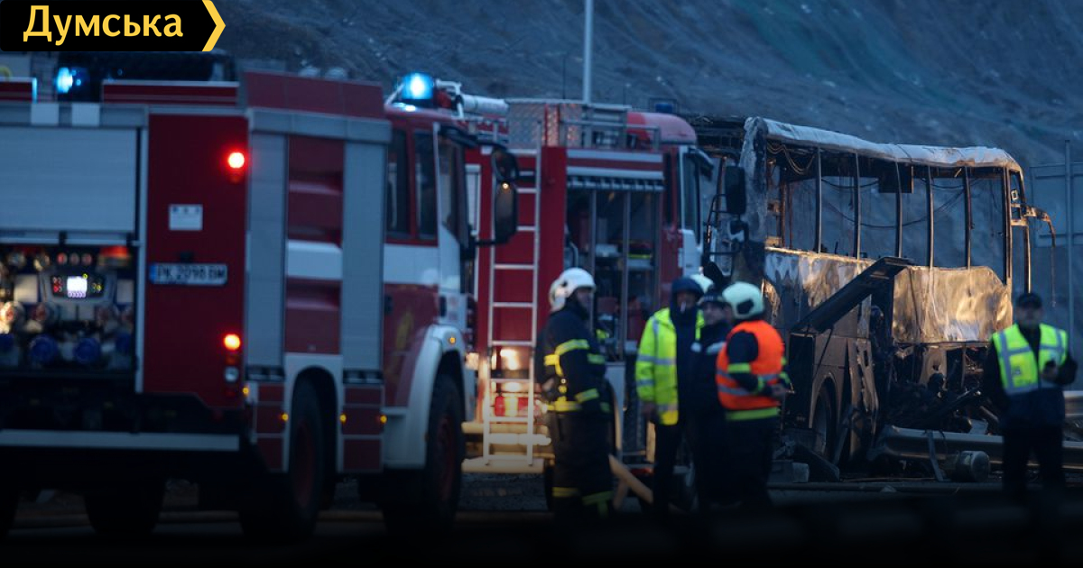 По меньшей мере 45 пассажиров автобуса погибли в результате ДТП и последующего пожара, который произошел ночью на шоссе в Болгарии. По данным местных СМИ, среди погибших в результате инцидента — 12 детей. Выжили семь пассажиров. Пострадавших госпитализировали в больницу Софии с ожогами лица и верхних дыхательных путей. Автобус перевозил туристов из Северной Македонии, выехав накануне вечером из Стамбула. Всего в автобусе находилось 52 человека. Точная причина аварии пока не известна, рассматривают несколько версий. Одна из них — неудовлетворительное состояние дорожного покрытия на участке, где произошло ДТП. Фото: Reuters СМЕРТЬ РОСІЙСЬКИМ ОКУПАНТАМ! Помітили помилку? Виділяйте слова з помилкою та натискайте control-enter Новини по цій темі: 10 листопада 2025: Смертельна аварія під Одесою: водія виправдали через відсутність доказів 20 жовтня 2025: В Одесі димить підстанція, а два райони міста частково залишилися без світла (відео) 9 жовтня 2025: Нічний удар по Одеській області: постраждали п'ятеро людей, понад 30 тисяч абонентів залишилися без світла 30 серпня 2025: Машина вилетіла в кювет: мер Рені потрапив в аварію, його мати загинула, а маленький син у лікарні (фото) 19 серпня 2025: У будівлі коледжу в центрі Одеси виявили труп невідомого |