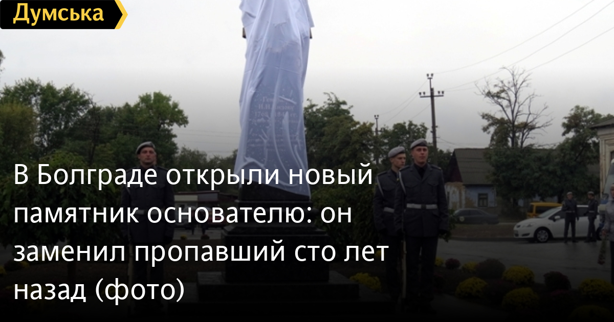 Торжественное открытие памятника основателю города, генералу, попечителю балканских переселенцев Ивану Инзову состоялось 7 октября в райцентре Болград.