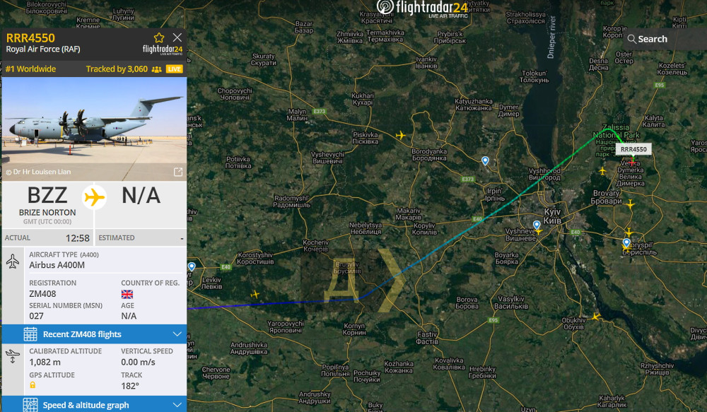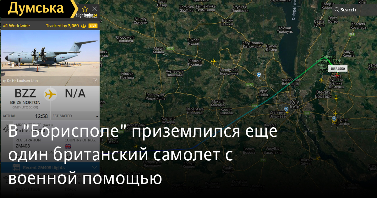 Только что в аэропорту «Борисполь» приземлился британский военно-транспортный Airbus A400M.