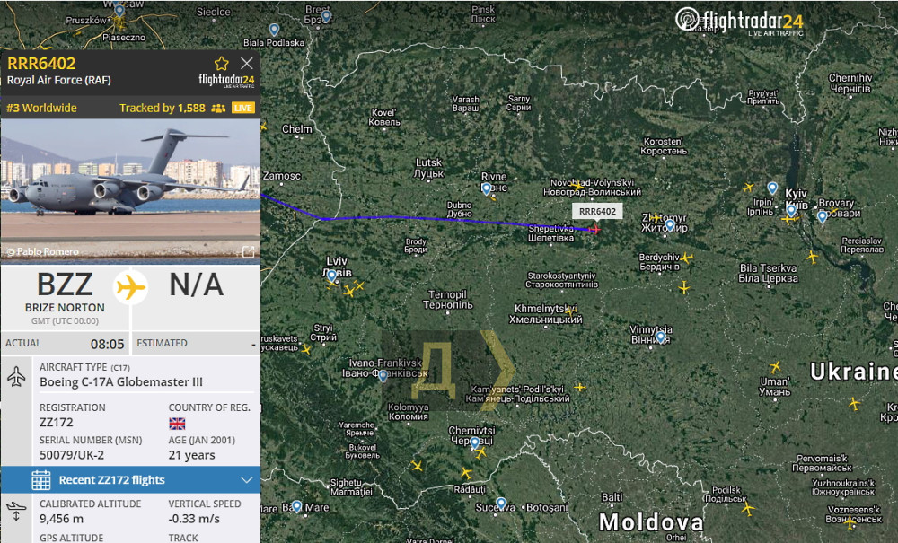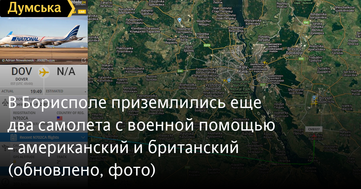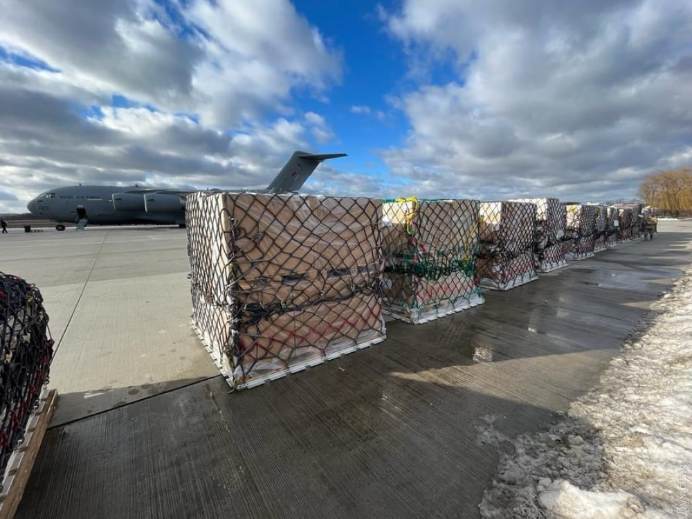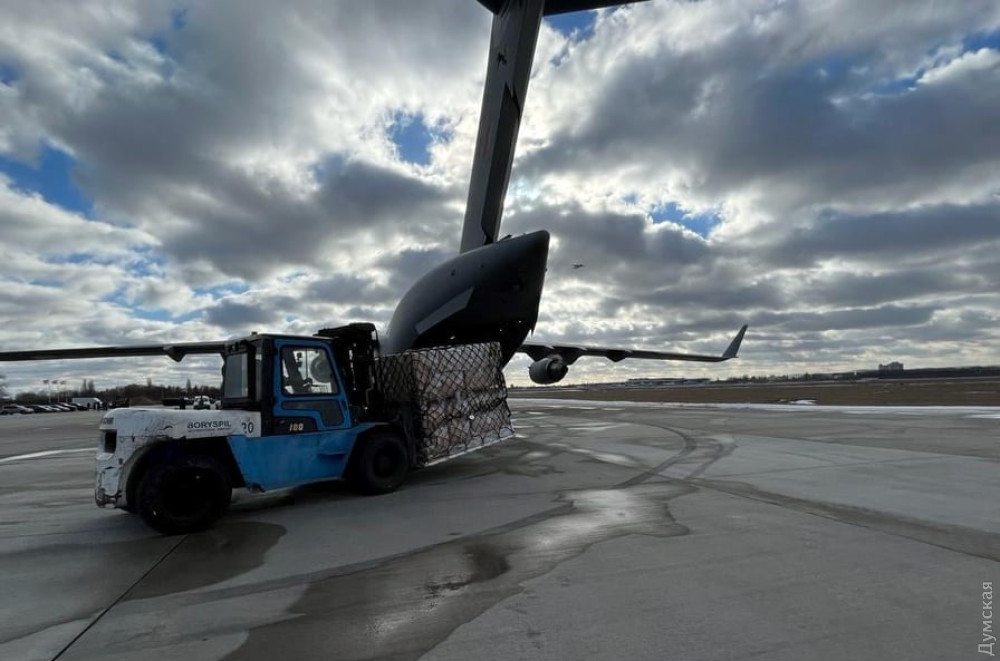 Очередной, уже тринадцатый, рейс с американской военной помощью приземлился в Борисполе, а спустя два часа прибыла британская помощь.