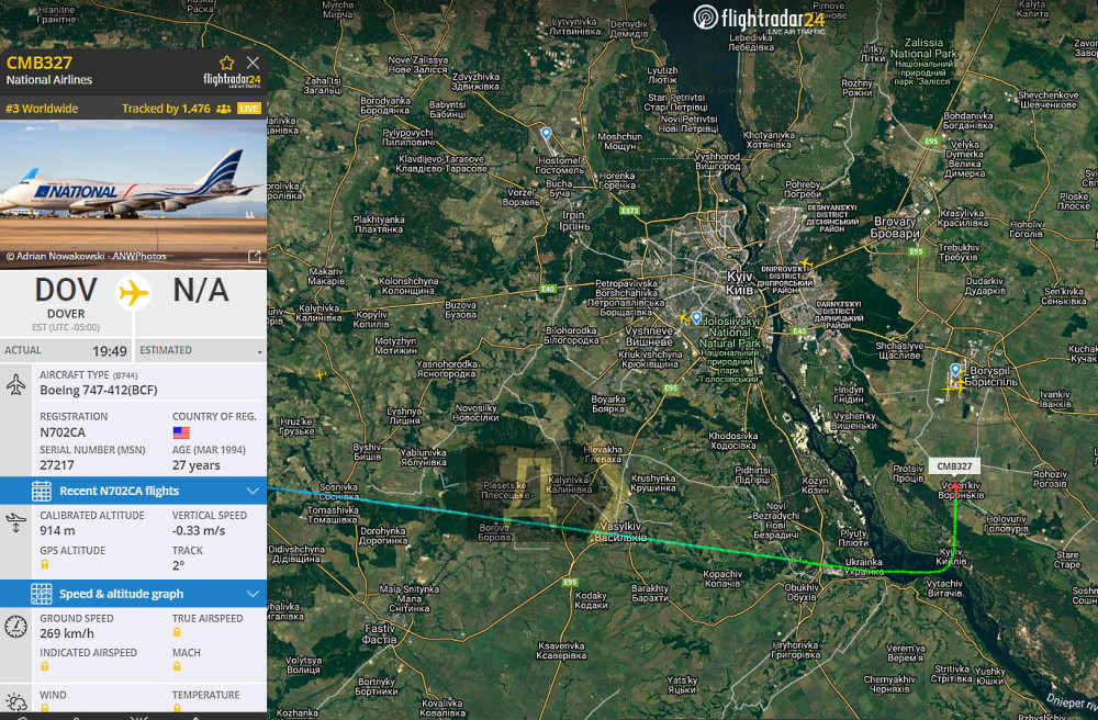 В 10:35 грузовой Boeing 747-412 (BCF) авиакомпании National Airlines коснулся ВПП столичного аэропорта. Авиакомпания National Airlines совершила рейс с авиабазы Довер, на борту более 80 тонн вооружений и оборудования, но точный состав пока не известен.