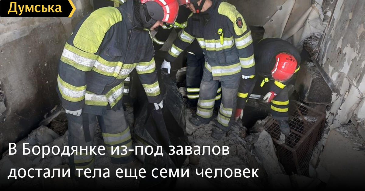 Во время разбора завалов двух многоэтажек в Бородянке Киевской области 11 апреля спасатели обнаружили тела семи человек.