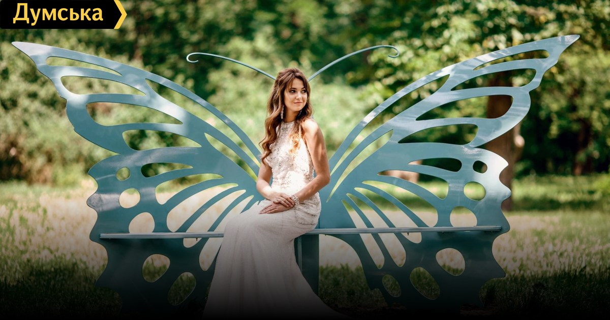 Под старым вековым дубом Одесского ботанического сада установили скамейку в виде бабочки. Декор подарили в день своей свадьбы одесские молодожены Вадим Роговский и Алина Дорошенко – участники социального благотворительного проекта «Твой город».
