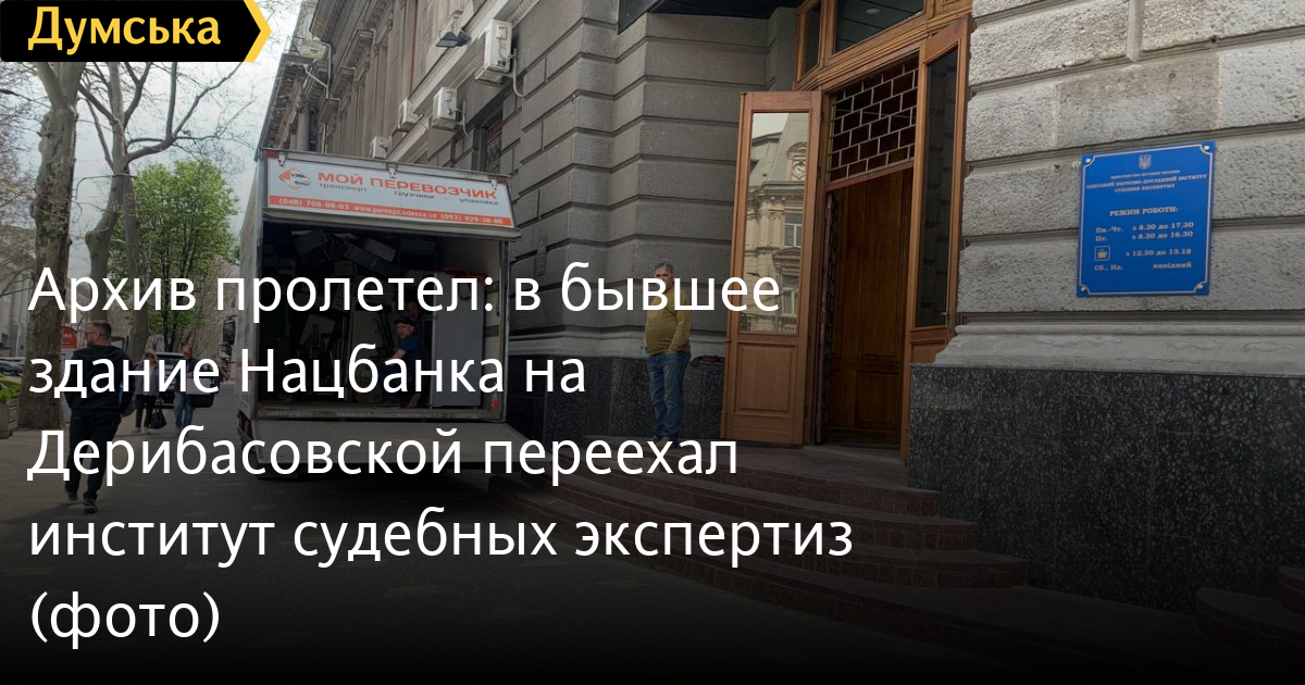 Одесский научно-исследовательский институт судебных экспертиз, подчиняющийся Министерству юстиции, переехал в бывшее здание управления Нацбанка Украины в Одесской области, что на углу Дерибасовской и Ришельевской.