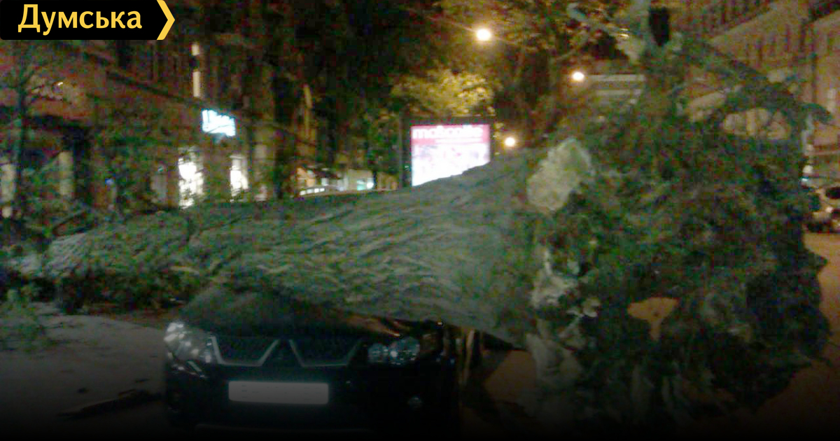 Накануне вечером в Одессе на улице Греческой, 30 от падения дерева серьезно пострадал легковой автомобиль. Инцидент произошел между 21 и 23 часами, сообщают очевидцы происшествия. Владелец машины сообщил, что с просьбой поднять ствол он обращался в различные инстанции, включая «Горзелентрест», МЧС, ГАИ, но везде ответили отказом.