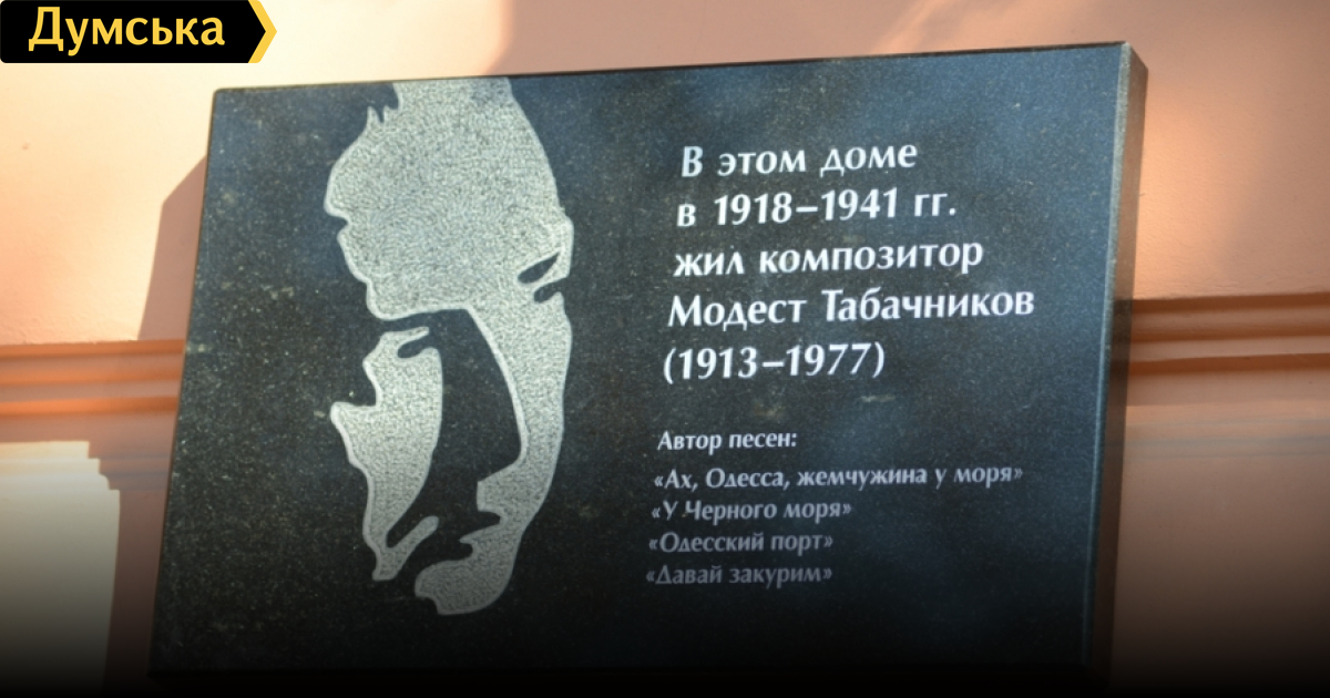 В центре города открыли мемориальную доску в честь автора легендарных песен об ОдессеМемориальную доску в честь известного композитора Модеста Табачникова установили на стене дома №85 по Екатерининской улице, где он проживал На торжественном открытии присутствовали общественники, представители городских властей, а также 94-летняя сестра композитора Белла Ефимовна, пишет «Трасса-Е95». «Мне приятно, что одесситы не забывают моего брата, — сказала Белла Ефимовна. — Он очень любил этот город и многое сделал, чтобы увековечить его. Я надеюсь, что благодаря этой мемориальной доске о нем будут вспоминать и новые поколения одесситов». Модест Табачников (1913-1977) родился в Одессе. Играл в оркестре при фабричном клубе. С 1931 по 1936 гг. учился на дирижёрском факультете Одесского музыкально-театрального института. В 1940—1941 гг. заведовал музыкальной частью Одесской киностудии. Во время войны был художественным руководителем ансамбля песни и пляски 2-й Гвардейской армии, руководитель музыкальной части фронтового театра «Веселый десант». В это время сочинил много патриотических песен о войне, о фронтовой дружбе. Автор музыки к нескольким опереттам, к 50 драматическим спектаклям и 7 кинофильмам. Всего в творческом багаже композитора более 230 песен. Одессу увековечил в легендарных песнях «У Черного моря», «Ах, Одесса жемчужина у моря», «Давай закурим», «Одесский порт» и других. СМЕРТЬ РОСІЙСЬКИМ ОКУПАНТАМ! Помітили помилку? Виділяйте слова з помилкою та натискайте control-enter |