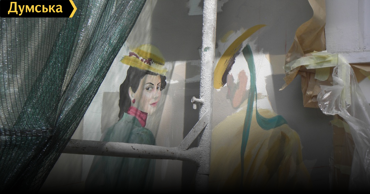 В центре Одессы на глухой стене офиса рисуют дореволюционный Оперный театр
