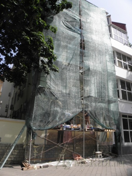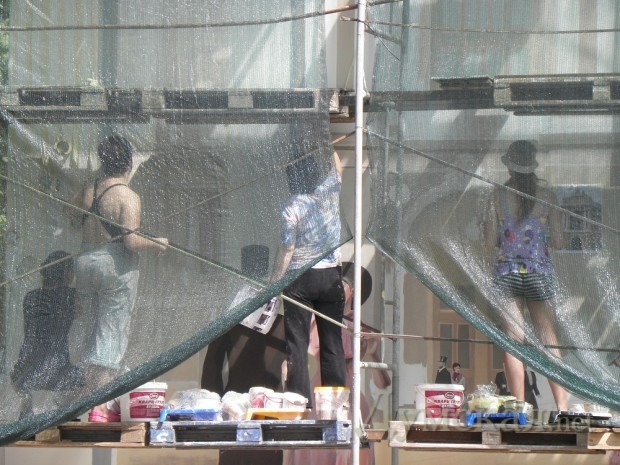 Как передает ваш корреспондент, сейчас над огромной фреской трудится целая сборная художников из нашего города, Киева и Днепропетровска. Закончить работу они обещают до конца недели. По словам мастеров, рисунок им заказал собственник здания.