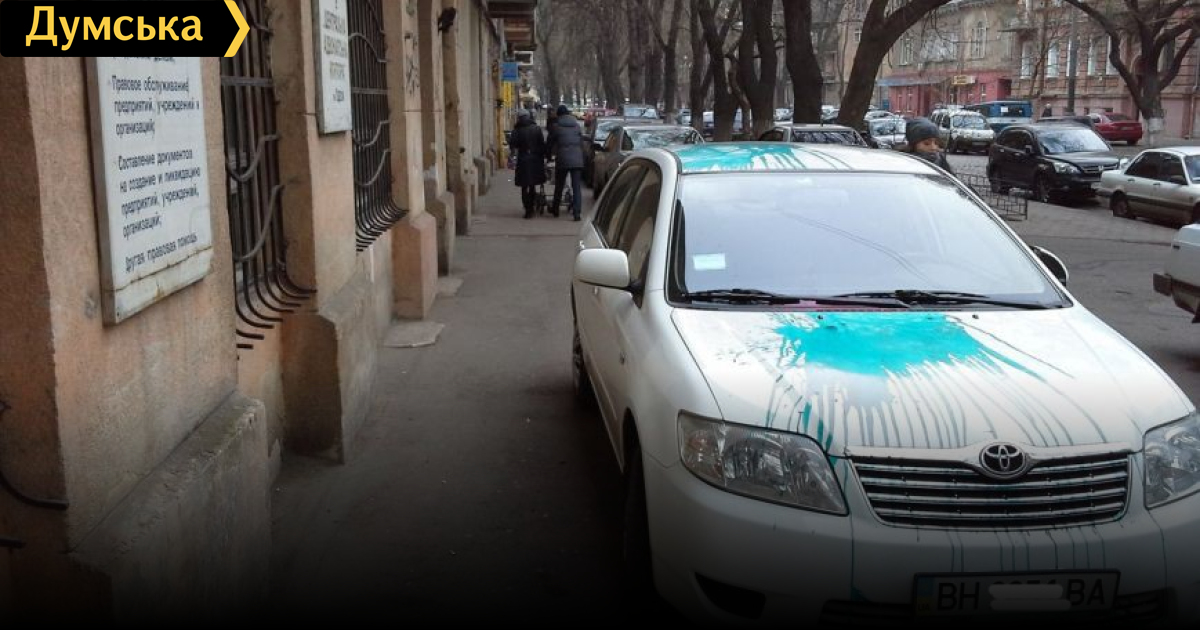 В центре Одессы облили зеленкой неправильно припаркованную машину