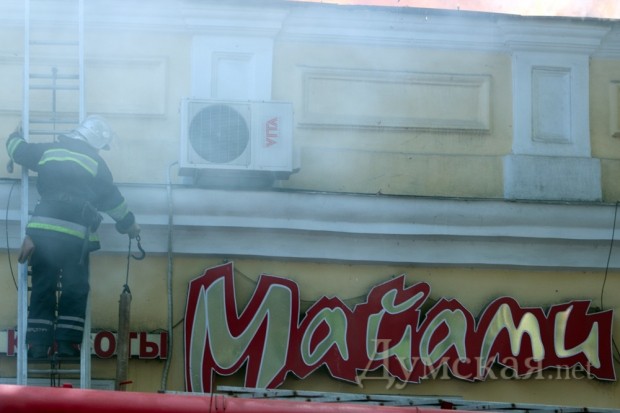 Как передает с места событий корреспондент «Думской», горит угловое одноэтажное здание по адресу Канатная, 61. В этом доме находится продуктовый магазин «Лукошко» и салон красоты «Майями».
