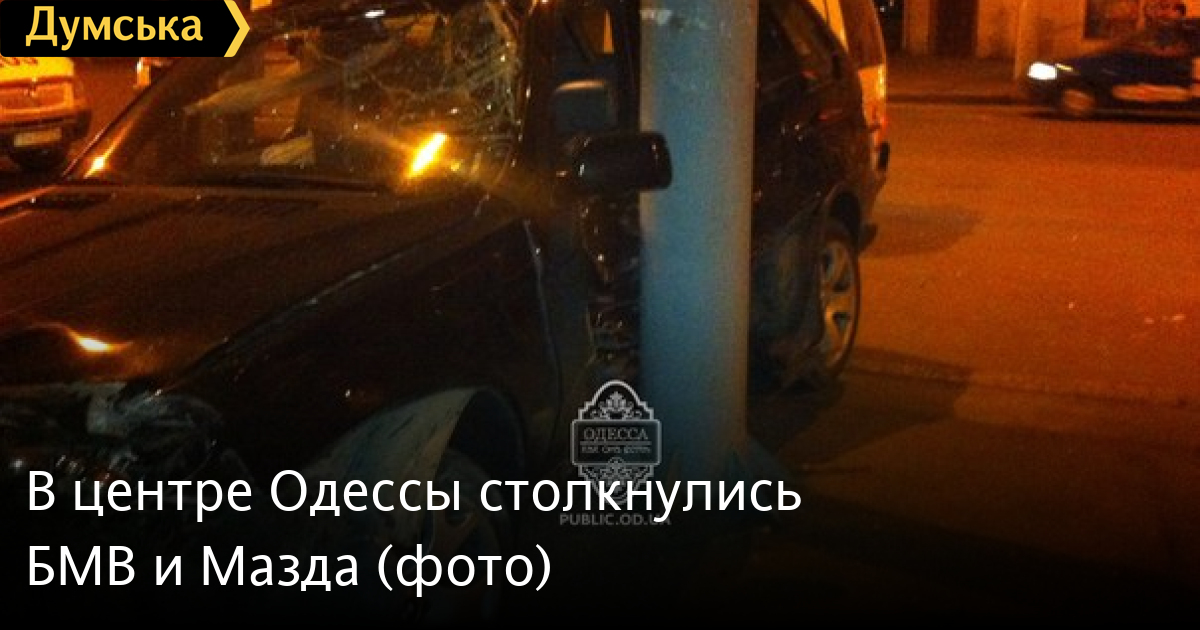 Как сообщают очевидцы в паблике «Одесса как она есть», обе машины серьезно повреждены. У «Мазды» смята передняя часть, а «БМВ» после столкновения врезался в столб.