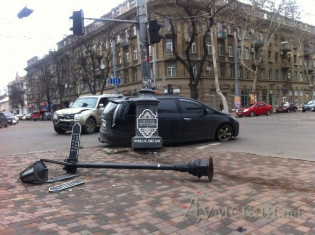 В результате столкновения был повален столб с указателями улиц и поврежден светофор. Пострадавших в результате ДТП нет.