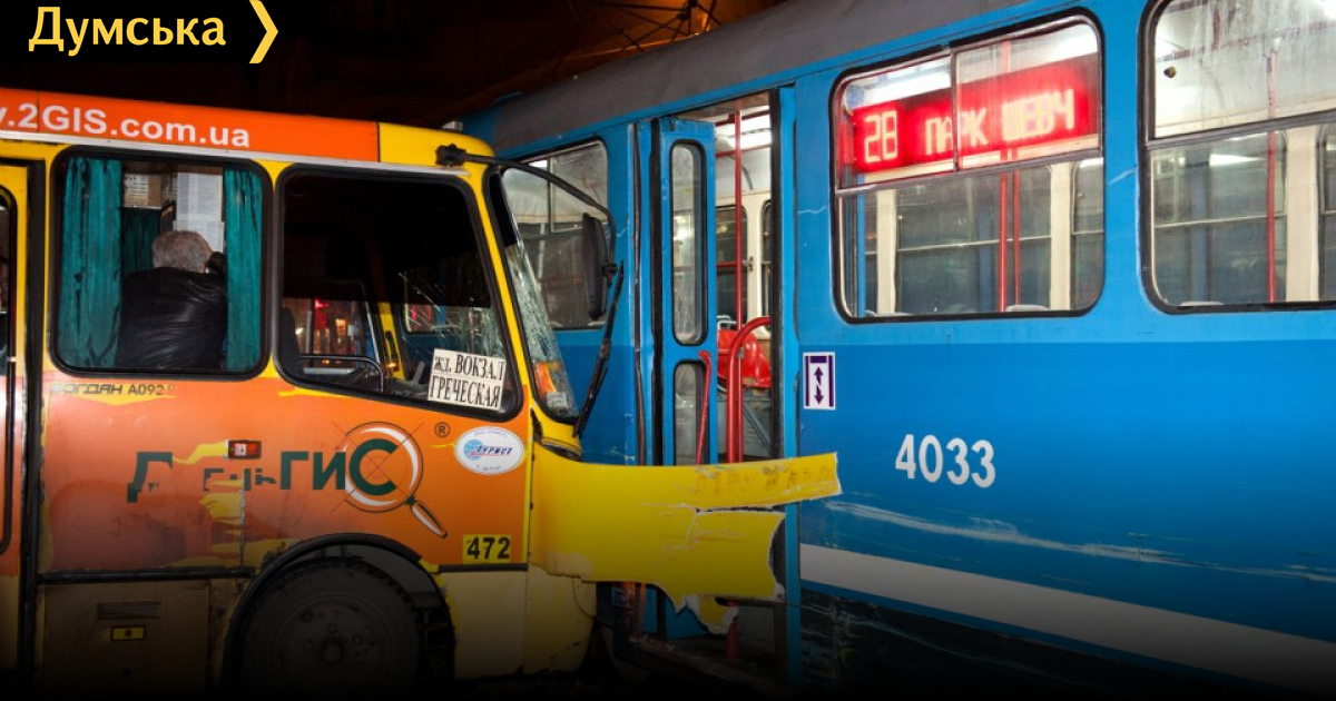 ДТП при участии трамвая и маршрутного такси произошло вечером в пятницу на пересечении Пантелеймоновской и Привокзальной площади.