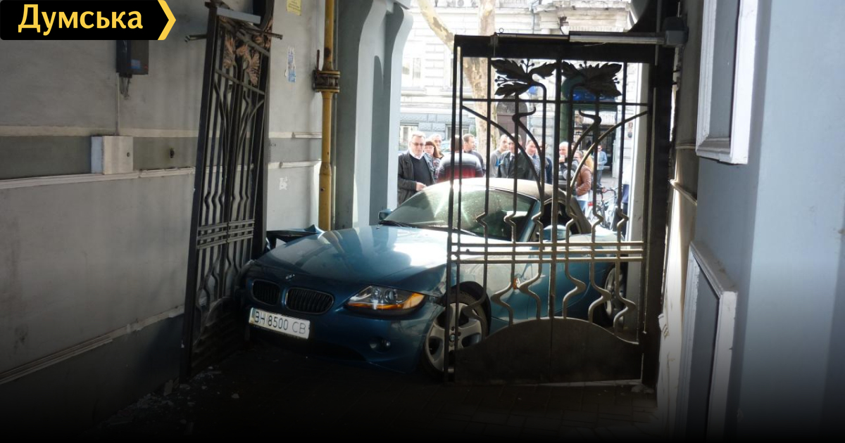 Водитель внедорожника решил раздавить автомобиль, который оказался у него на пути. По словам очевидцев, инцидент произошел вечером 15 апреля у дома №7 на Пушкинской улице. «Женщина припарковала BMW Z4 при въезде во двор, который был закрыт металлическими воротами. За ней подъехал мужик на джипе (Mitsubishi Pajero, — Ред.) и у них произошел конфликт. Мужик, недолго думая, уперся в ее машинку мордой и в прямом смысле слова вдавил ее в ворота», — пишут свидетели в «Одесском форуме».
