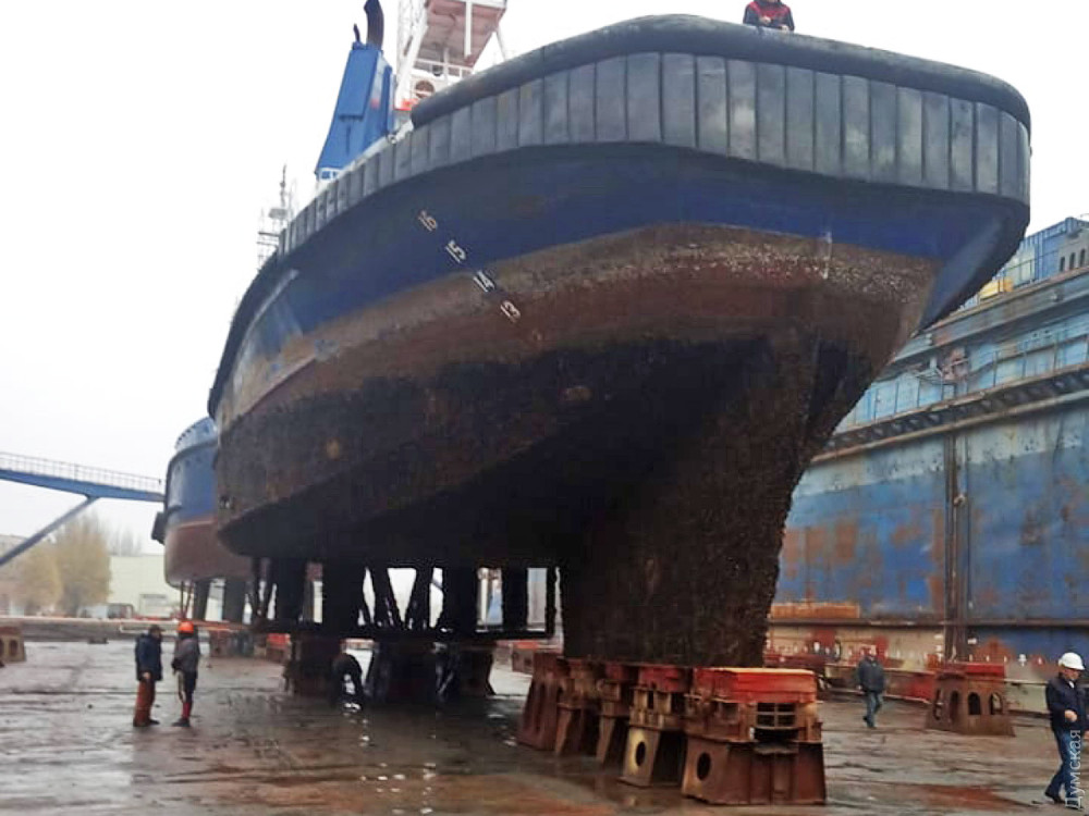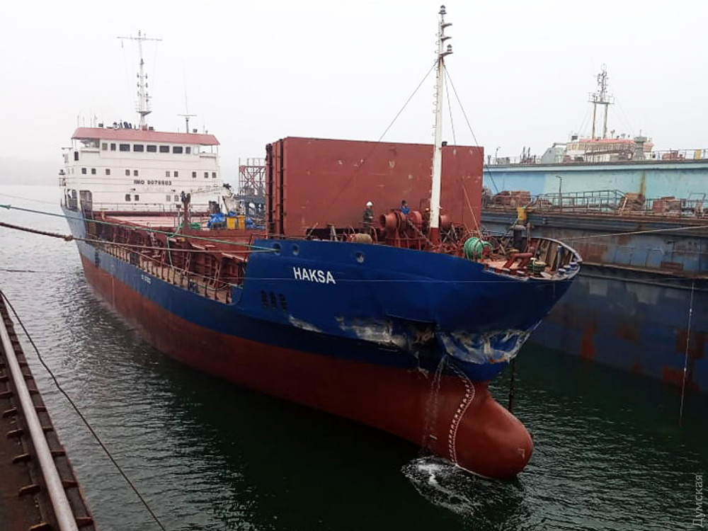 Турецкий сухогруз HAKSA (флаг Палау), протаранивший 22 октября этого года 18-й причал в порту Черноморск, сегодня вечером начали ремонтировать на судоремонтном заводе ИСРЗ.