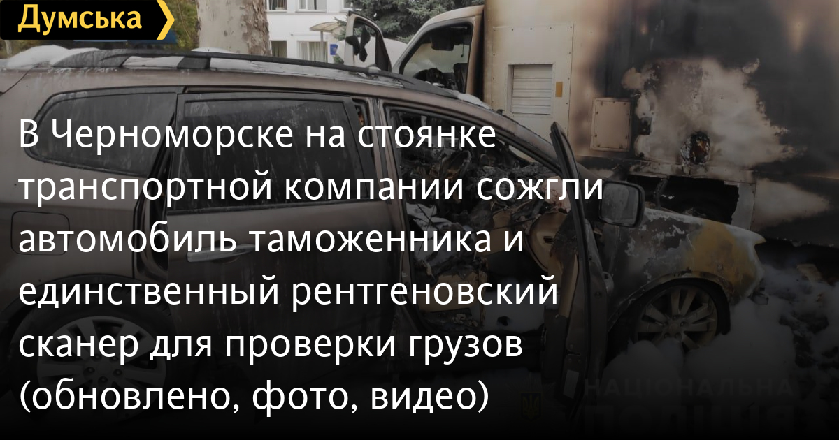 ОБНОВЛЕНО В 13:56. На стоянке «Ильичевсквнештрас» сгорела не только машина Харченко. Как пишет журналист Юрий Бутусов, пламя перекинулось на соседний автофургон, в котором находился Rapiscan — единственный работающий рентгеновский сканер проверки грузов Одесской таможни.