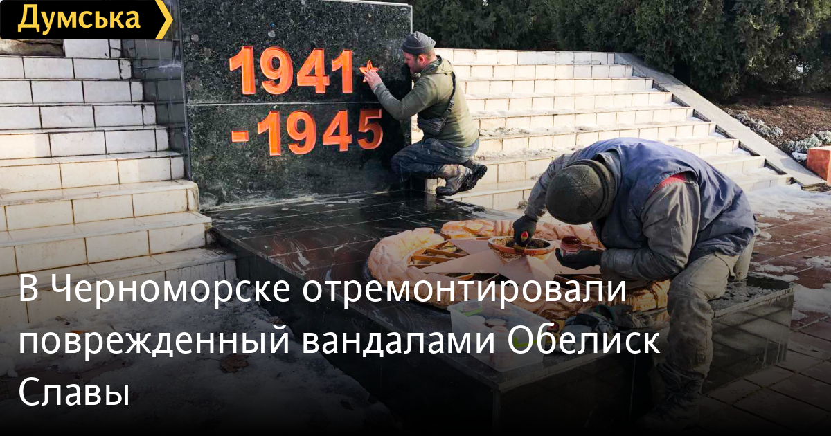 Коммунальщики восстановили цифры 1941 на Обелиске Славы в Черноморске. О проведении работ сообщил директор городского КП «ГУЖКХ» Сергей Мыза. «Рельеф цифр выполнен на лабрадоритовых монолитных плитах, которые закрепили на предварительно подготовленное основание. Кроме этого, обновлена окантовка Вечного огня и отремонтирована облицовка основания. Теперь нужно обновить и привести в порядок остальную территорию главного памятника нашего города», — сообщил Мыза. Напомним, раньше цифры на памятнике были металлические, но в ноябре их похитили вандалы. СМЕРТЬ РОССИЙСКИМ ОККУПАНТАМ! Заметили ошибку? Выделяйте слова с ошибкой и нажимайте control-enter |