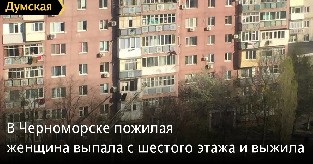 79-летняя женщина выпала из окна 6-этажа девятиэтажки на улице Виталия Шума в Черноморске, но выжила. Как сообщили «Думской» в ГСЧС, инцидент произошел в субботу вечером. Упавшая зацепилась за телевизионную антенну. Прибывшие спасатели при помощи автолестницы сняли женщину и передали врачам скорой. Фото очевидцев Заметили ошибку? Выделяйте слово с ошибкой и нажимайте control-enter |