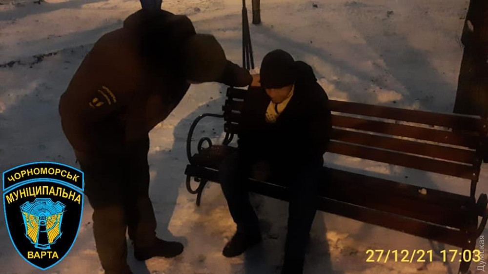 В Черноморске сотрудники коммунального учреждения «Муніципальна варта» выручили пьяного мужчину, который в мороз уснул на лавке во дворе многоэтажки.