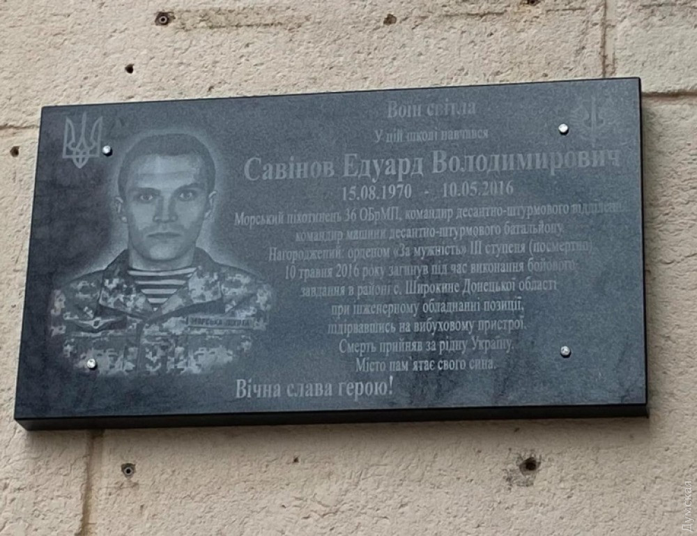 Мемориальную доску младшему сержанту Вооруженных сил Украины Эдуарду Савинову, погибшему на фронте российско-украинской войны, открыли на стене черноморской школы №1, где учился военнослужащий.