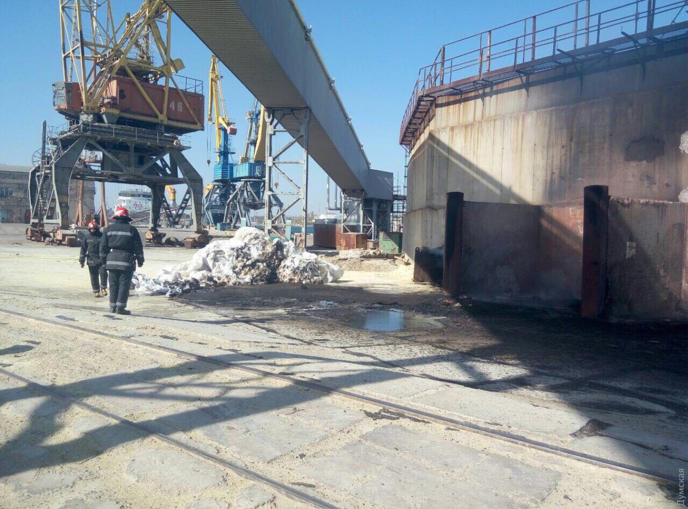 ЧП случилось сегодня в Черноморском морском торговом порту. Здесь загорелся тент для накрытия грузовых вагонов. Клубы дыма было видно за несколько километров от места просшествия, и создавалось впечатление какой-то масштабной катастрофы. Однако в пресс-службе ГСЧС и в полиции заверили, что сгорело всего 20 квадратных метров тента. Пожар локализовали в 15:39 и в 15:59 полностью ликвидировали. Напомним, 29 марта в этом порту взорвалось зернохранилище, в результате чего пострадал работник порта. СМЕРТЬ РОСІЙСЬКИМ ОКУПАНТАМ! Помітили помилку? Виділяйте слова з помилкою та натискайте control-enter |