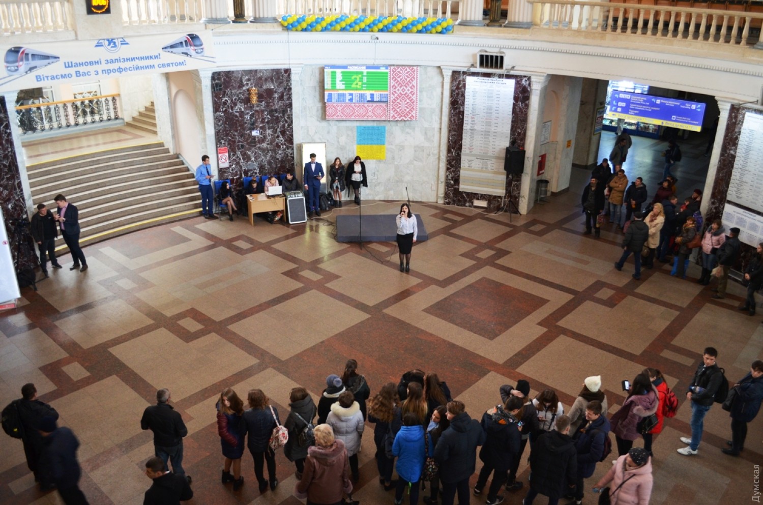 Как отметили в пресс-центре ОЖД, утром на вокзале звучали поздравления и праздничные песни. Концертную полуторачасовую программу подготовили студенты Одесского колледжа транспортных технологий.