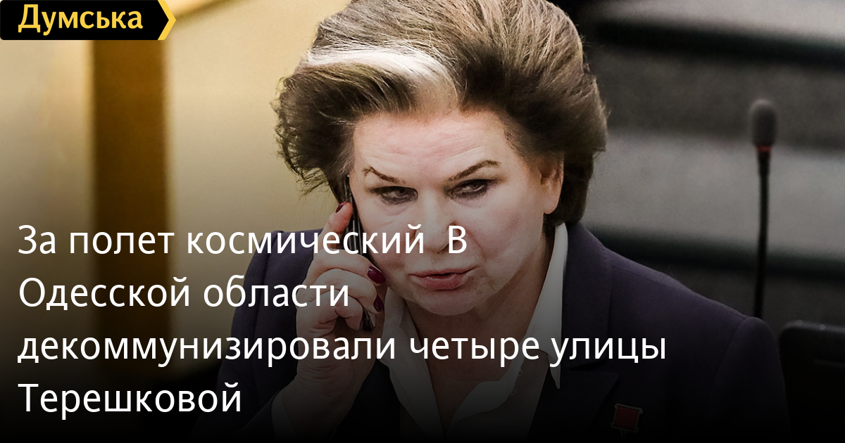 Улицы в четырех населенных пунктах Одесской области, названные в честь первой женщины-космонавта, члена президиума верховного совета СССР и члена госдумы РФ, сторонницы путинского режима Валентины Терешковой, сменили название.