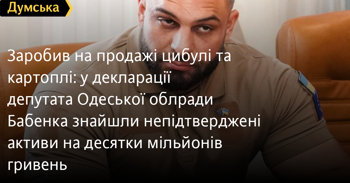 Заробив на продажі цибулі та картоплі: у декларації депутата Одеської облради Бабенка знайшли непідтверджені активи на десятки мільйонів гривеньНедостовірні дані на понад 28 млн гривень виявило в декларації депутата Одеської облради Андрія Бабенка Нацагентство з питань запобігання корупції. Згідно з даними НАЗК, йдеться про звітність за 2023 рік. Засновник охоронного агентства «Самсон» вказав, що зберігав на той момент готівкою 450 тис. доларів, походження яких підтвердити не зміг. У НАЗК зазначили, що виходячи з аналізу його декларацій, поданих починаючи з 2019 року, депутат не міг накопичити таку суму. Сам Бабенко пояснив їм, що нібито ще 2010 року, коли займався сільським господарством, продав підприємцю цибулю, моркву і картоплю на 3,6 млн гривень. Але покупець розрахувався з ним тільки у 2014-му. Депутат одразу перевів гроші в долари. Крім того, Бабенко не вказав у декларації квартиру в Одесі площею майже 200 кв.м вартістю 8,5 млн грн, у якій живуть його діти з матір'ю. З дружиною він офіційно розлучений з 2023 року, хоча в НАЗК стверджують, що згідно з аналізом соцмереж пара продовжує жити разом. Ба більше, житло, про яке йдеться, належить фірмі, якою володіє мати депутата. Забув Андрій Бабенко і про куплені, а потім продані мотоцикл BMW і автомобіль Renault, загальною вартістю понад 1,8 млн грн. У коментарі «Думській» Андрій Бабенко заявив, що це стосується його доходів у момент, коли він заробляв гроші як підприємець, депутатом він став тільки через кілька років. Наразі його юристи вже передають в агентство всі необхідні документи, що підтверджують джерела походження активів. «Це не остаточне рішення, зараз триває процедура, у нас є час і мої юристи надають усі необхідні документи, — зазначив Бабенко. — Це ще не кінцева, як то кажуть, зупинка. Я не чиновник і не мав стосунку до жодної посади, яка дозволяла б заробляти на корупційних схемах тощо. У 2020 році я став депутатом і задекларував за законом ті гроші, які в мене на той момент були, 450 тисяч доларів. Зараз вони просять: «Дайте документи, звідки у вас ці кошти». Ми зараз їм надаємо. Я не бачу жодних проблем і я впевнений, що все буде добре». СМЕРТЬ РОСІЙСЬКИМ ОКУПАНТАМ! Помітили помилку? Виділяйте слова з помилкою та натискайте control-enter |