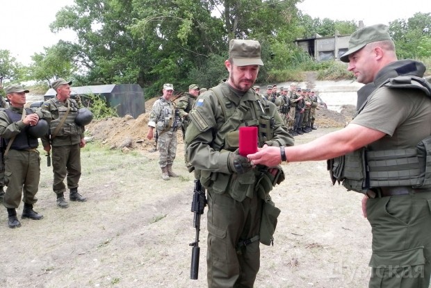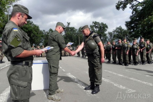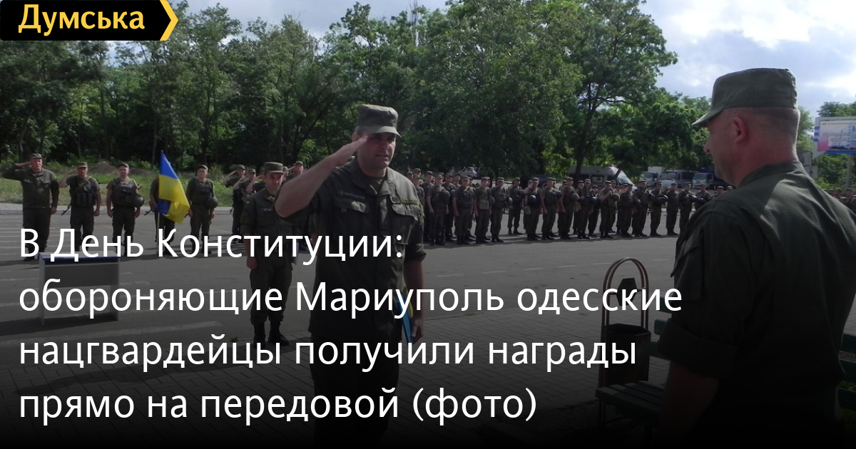 В День Конституции начальник Южного территориального управления Национальной гвардии Украины генерал-майор Владимир Кондратюк наградил военнослужащих одесских частей НГУ, которые обороняют Мариуполь.