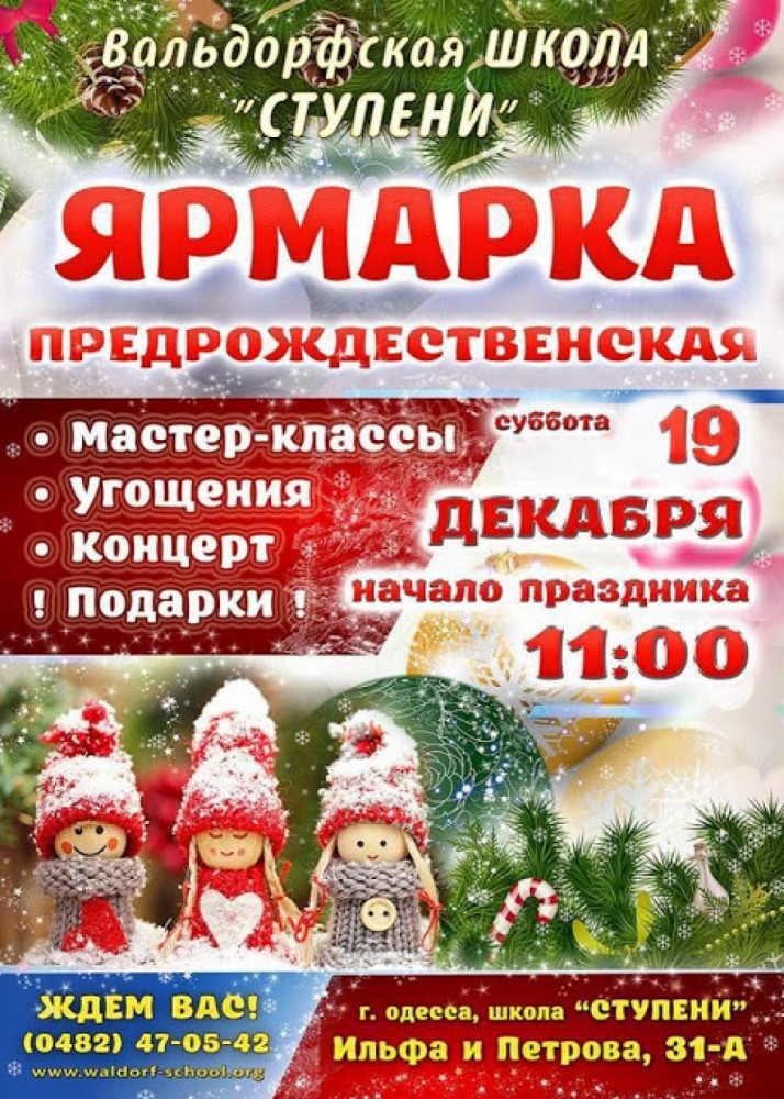 В субботу, 19 декабря, в Одессе пройдет предрождественская ярмарка с концертом, угощениями и мастер-классами. Ярмарка будет проходить в школе «Ступени» на улице Ильфа и Петрова, 31а с 11:00. Посетить ее могут и дети, и взрослые. СМЕРТЬ РОСІЙСЬКИМ ОКУПАНТАМ! Помітили помилку? Виділяйте слова з помилкою та натискайте control-enter |