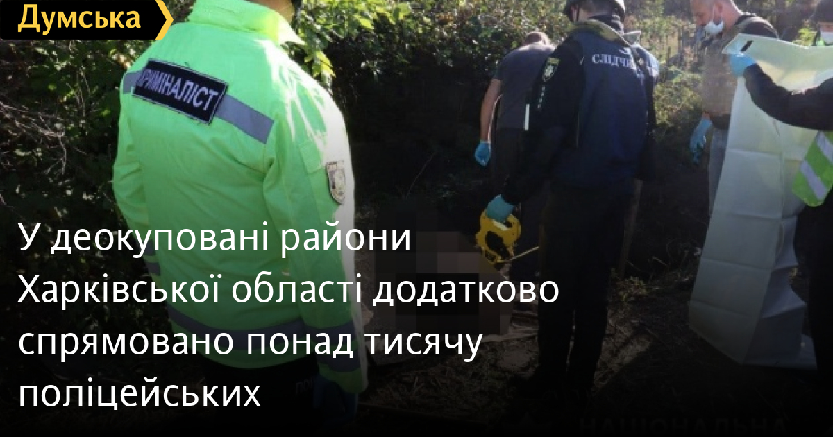 Для участі у заходах зі стабілізації ситуації в деокупованих районах на Харківщину направлено понад тисячу поліцейських.