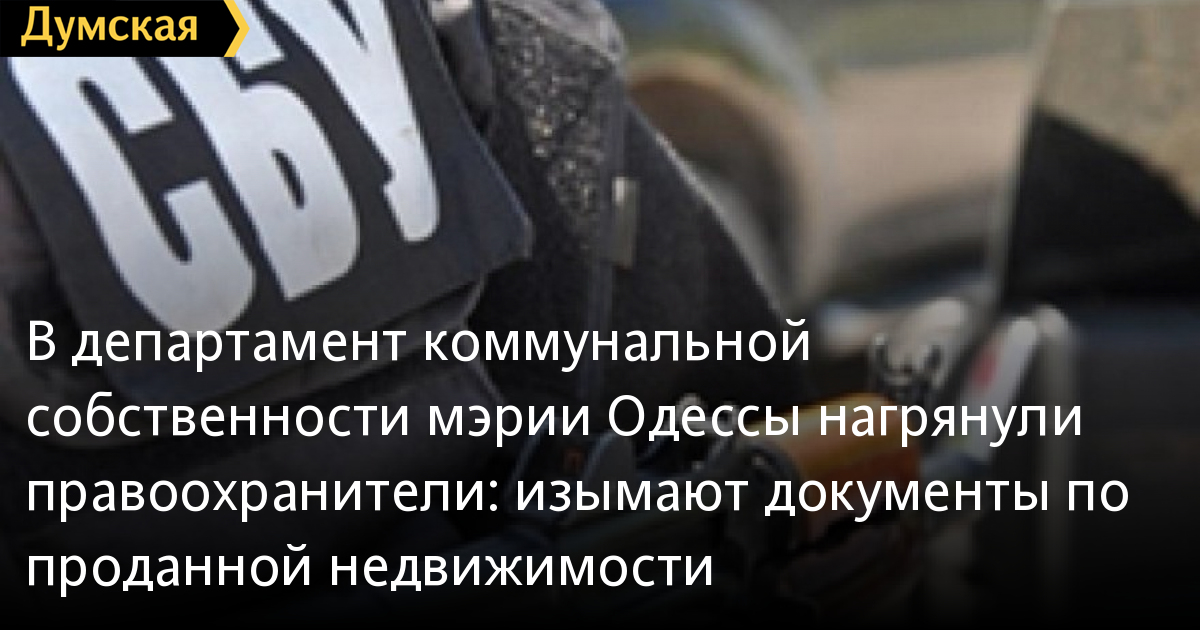 В департамент коммунальной собственности мэрии Одессы нагрянули правоохранители: изымают документы по проданной недвижимостиВ департаменте коммунальной собственности Одесского горсовета на Артиллерийской улице проходят следственные действия. Как сообщили «Думской» в прокуратуре, там работают следователи СБУ и Генпрокуратуры. Они изымают документы, касающиеся сдачи в аренду и продажи объектов коммунальной собственности в Одессе. «Уголовное производства, в рамках которого происходит изъятие, связано с бывшим вице-мэром Вячеславом Шандрыком», — отметил наш собеседник. ОБНОВЛЕНО В 14:21. Обыски проводятся также в домах руководителей департамента. Заметили ошибку? Выделяйте слово с ошибкой и нажимайте control-enter |