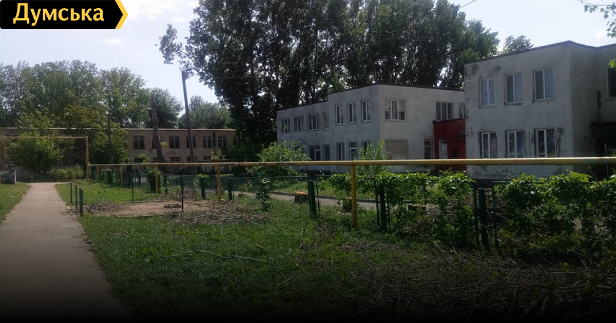 Одесские экоактивисты бьют тревогу – на территории детского сада №103, расположенного на улице Шишкина, срезали кроны и вырубили несколько десятков здоровых деревьев.