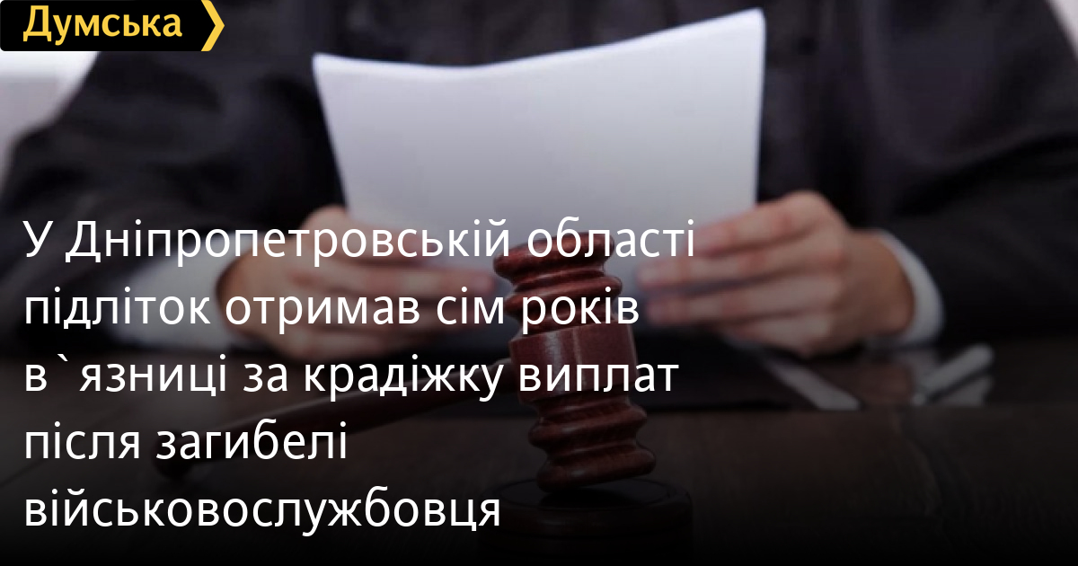 Суд засудив 16-річного жителя Дніпропетровської області до семи років позбавлення волі за крадіжку майже 1,3 мільйона гривень державної компенсації за загибель військовослужбовця на фронті.