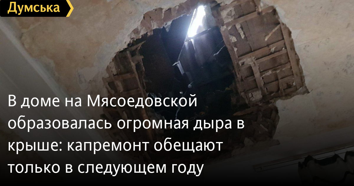 Об этом «Думской» рассказала хозяйка квартиры Надежда, из потолка которой виднеется небо.