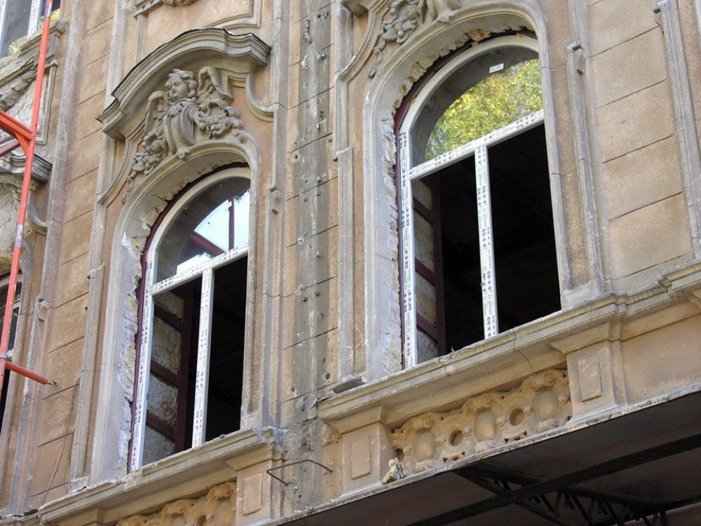 В ходе реконструкции дома №43Б по Троицкой улице старинные окна заменяют на белые пластиковые.