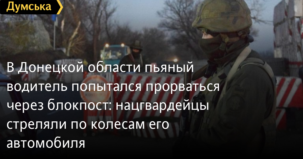 Военные остановил для проверки автомобиль Chevrolet, водитель которого был с явными признаками алкогольного опьянения. Он проигнорировал требования гвардейцев по осмотру и попытался прорваться через блокпост. На упреждающий выстрел в воздух водитель не отреагировал. Для остановки автомобиля военнослужащие выстрелив в его колеса.