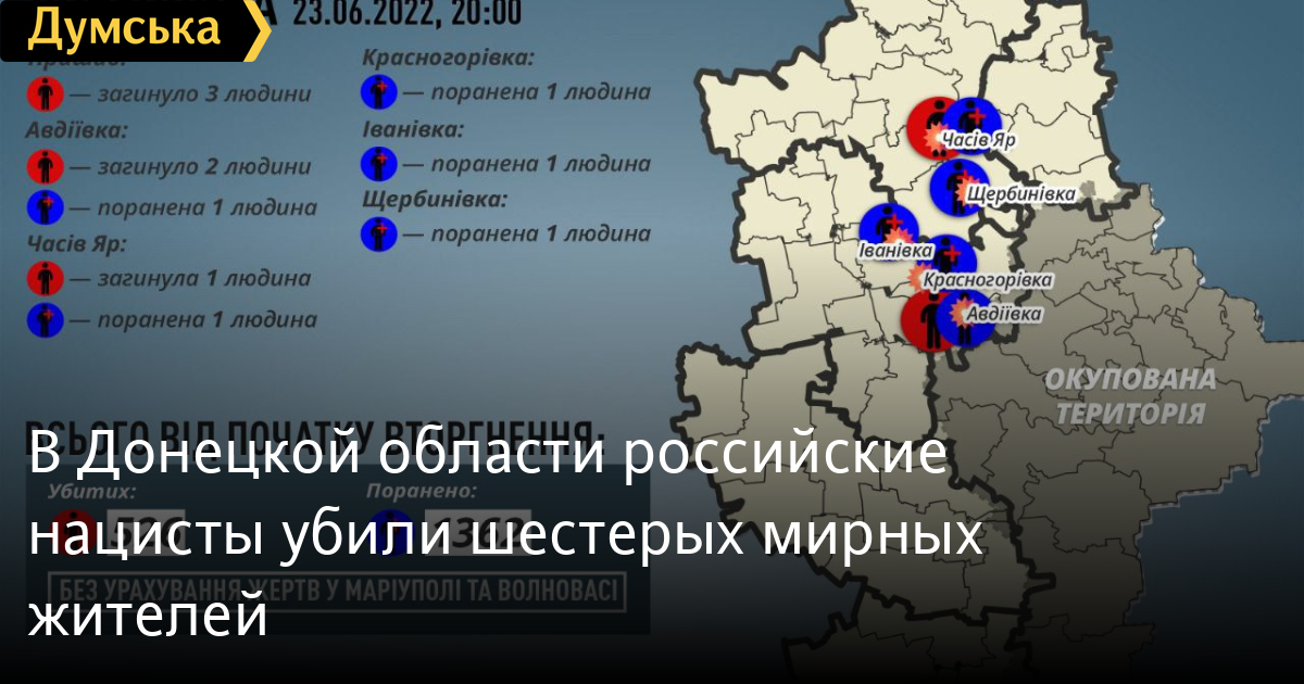 Шестеро мирных жителей Донецкой области погибли в результате вражеских обстрелов 23 июня.